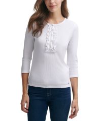 【女款】 Tommy Hilfiger Ruffle Rib-Knit Henley 上衣 11843404Bright White