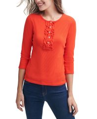 【女款】 Tommy Hilfiger Ruffle Rib-Knit Henley 上衣 11843404Flame Orange