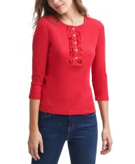 【女款】 Tommy Hilfiger Ruffle Rib-Knit Henley 上衣 11843404Scarlet