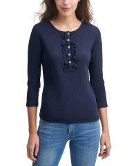【女款】 Tommy Hilfiger Ruffle Rib-Knit Henley 上衣 11843404Sky Captain