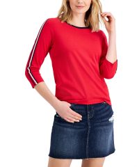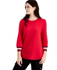【女款】 Tommy Hilfiger Charm Striped-Sleeve 上衣 12069991Scarlet