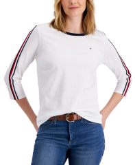 【女款】 Tommy Hilfiger Charm Striped-Sleeve 上衣 12069991Bright White