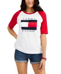 【女款】 Tommy Hilfiger Cotton Raglan-Sleeve Graphic 上衣 12070000Bright White/scarlet