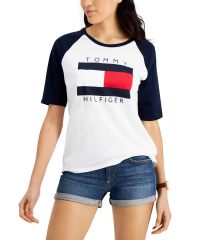 【女款】 Tommy Hilfiger Cotton Raglan-Sleeve Graphic 上衣 12070000Bright White/sky Captain