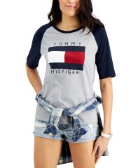 【女款】 Tommy Hilfiger Cotton Raglan-Sleeve Graphic 上衣 12070000Stone Grey Heahter/sky Captain
