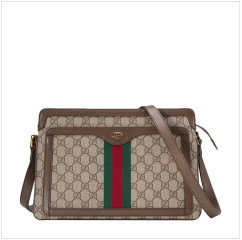【女款】 GUCCI古驰女士米色配乌木色高级人造帆布中号肩背包523354-96IWT-8745