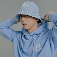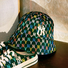 【男女通款】 MLB泫雅同款复古老花系列彩虹色NY满印圆顶渔夫帽水桶帽防晒