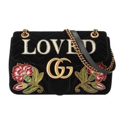 【女款】 【倪妮同款】GUCCI古驰GGMarmont系列黑色天鹅绒女士挎包443496-K4DLT-1093