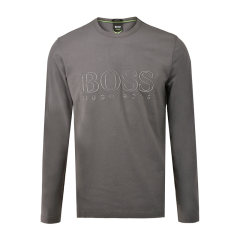 【男款】 HugoBoss雨果博斯男士灰色棉质混纺圆领BOSS标刺绣长袖T恤TOGNUS-182-0340-020
