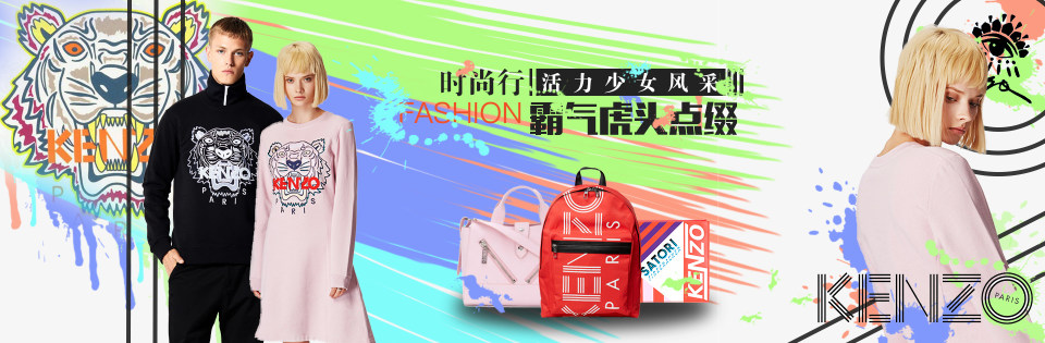 【男款】 QH Kenzo 高田贤三 男士蓝色纯棉虎头图案短袖T恤 F865TS0034YF-78