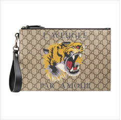【男款】 GUCCI古驰男士卡其印花老虎印花高级人造帆布手拿包473904-9CC1N-8666