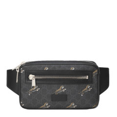 【男款】 GUCCI古驰男士老黑色/灰色饰老虎印花柔软高级人造帆布腰包474293-G02BN-8992