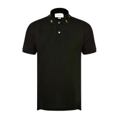 【男款】 GUCCI 古驰 男士黑色棉质领饰小蜜蜂蛇刺绣短袖POLO衫 523058-9U95-1236