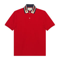 【男款】 QH19SS GUCCI 古驰 男士饰条纹织带和虎头polo衫 545714-XJAGU-6057