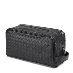 【男款】 BottegaVeneta宝缇嘉男士黑色真皮简约拉链休闲手拿包244706-V4651-1000