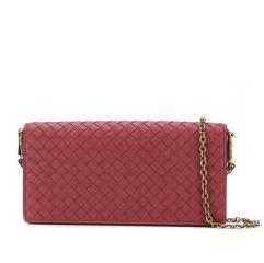 【女款】 BOTTEGAVENETA女士酒红色羊皮编织链条单肩斜挎钱包手拿包510564-VO0AD-6453