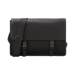 【男款】 BOTTEGAVENETA男士黑色尼龙皮编织翻盖单肩包548337-VAYE7-1000