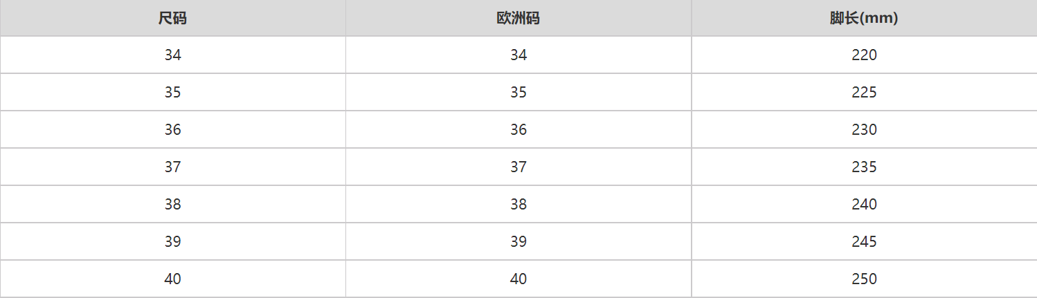 尺码信息