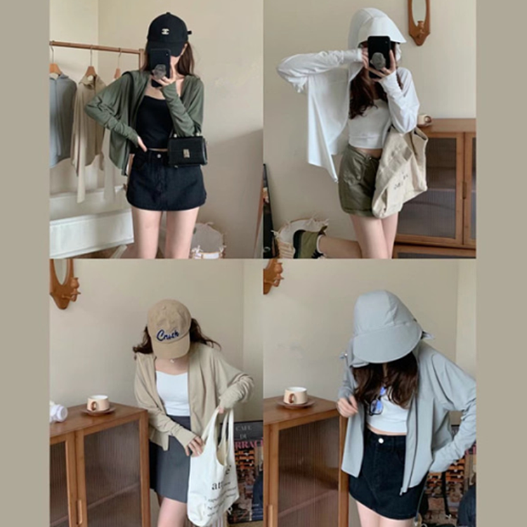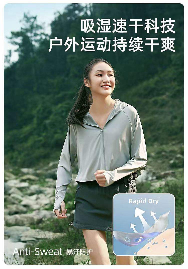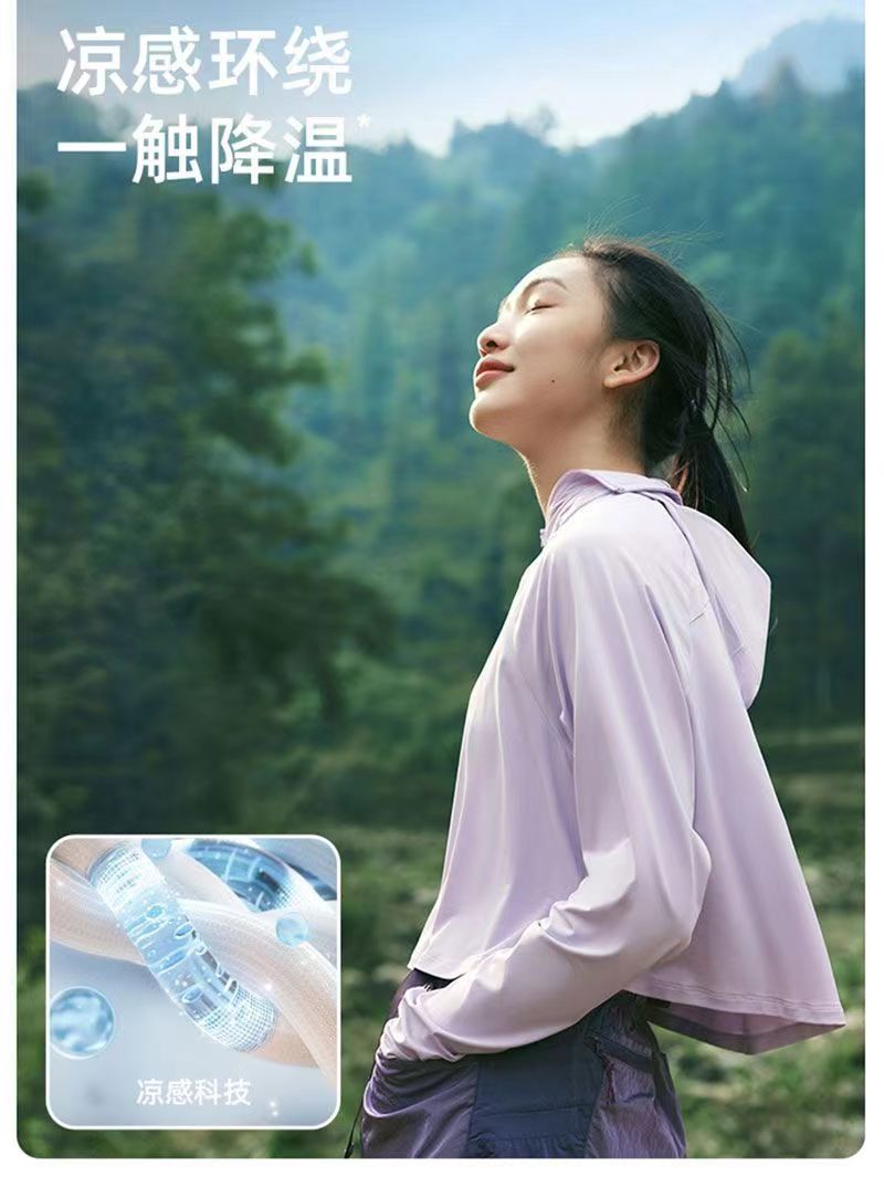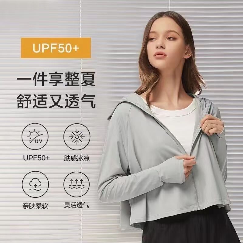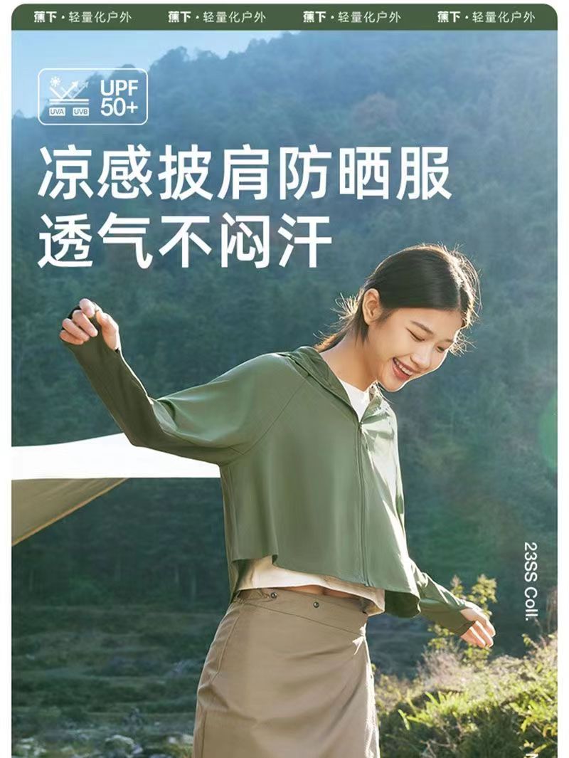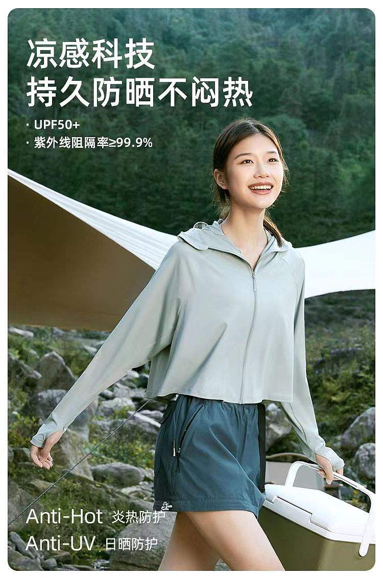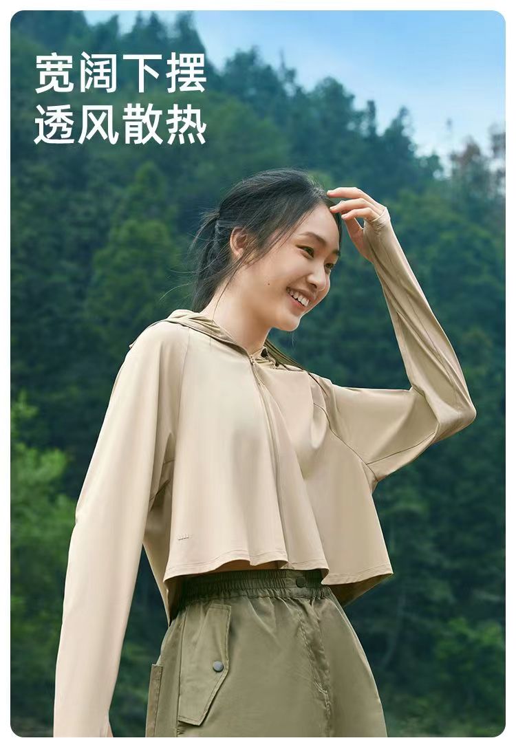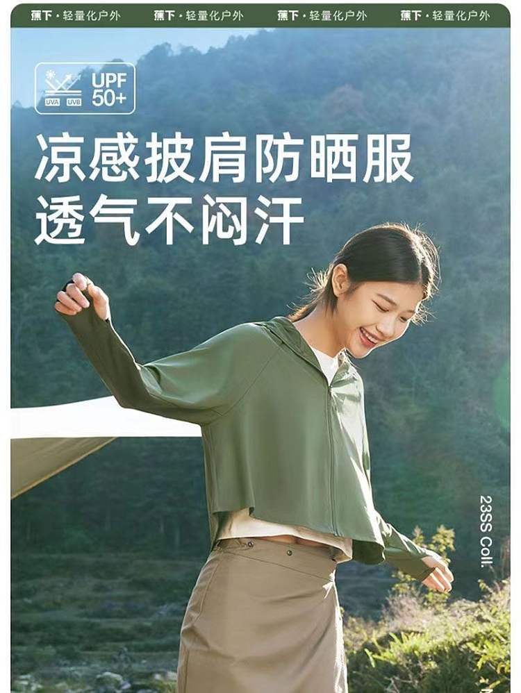 蕉下 纯色防紫外线冰丝透气披肩帽防晒衣 灰色