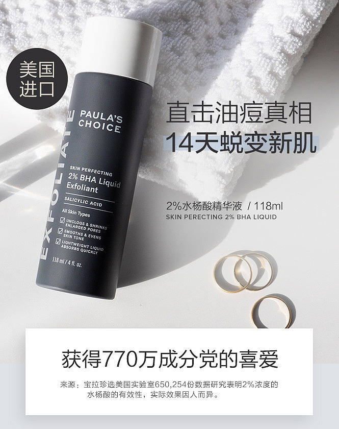 祛痘去黑头2%水杨酸精华液118ml收缩毛孔去闭口粉刺