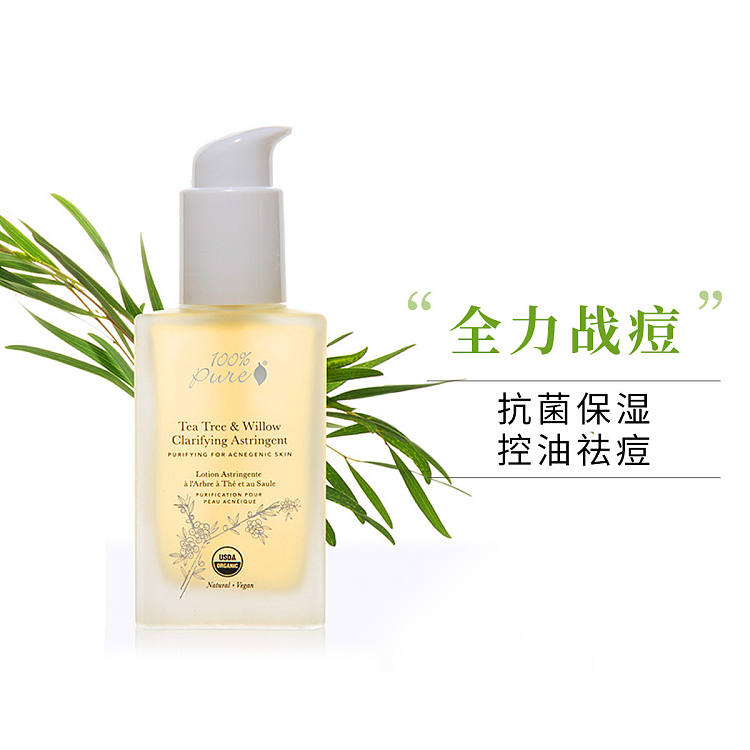 100%Pure茶树白柳清肌调理精华水控油祛痘舒敏愈合闭口