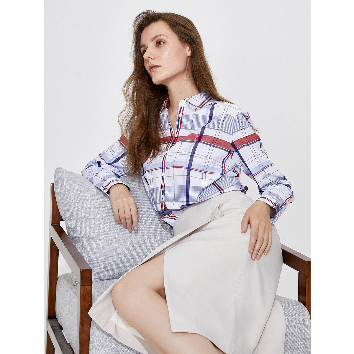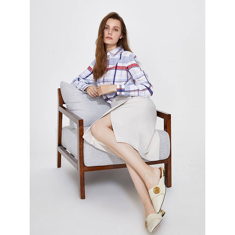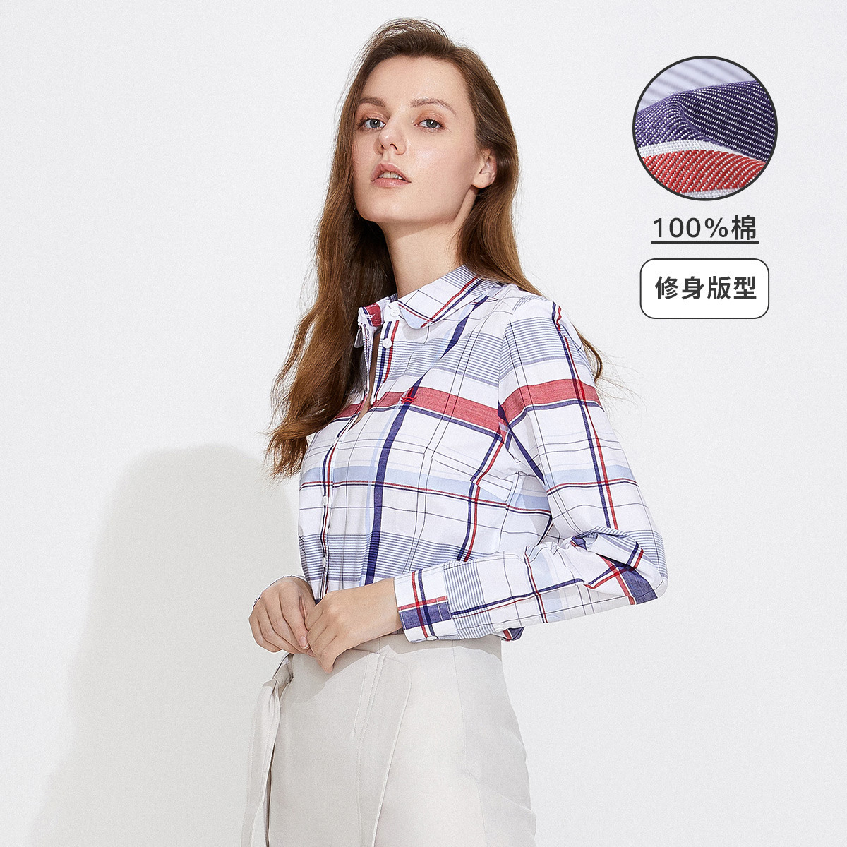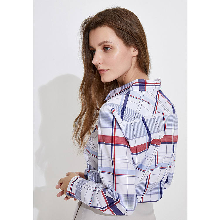 【女款】 春夏格纹休闲时尚合身衬衫女