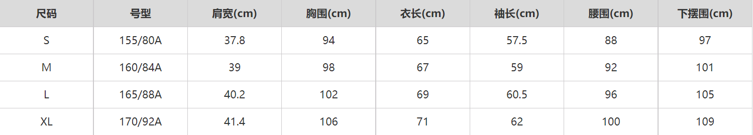 尺码信息