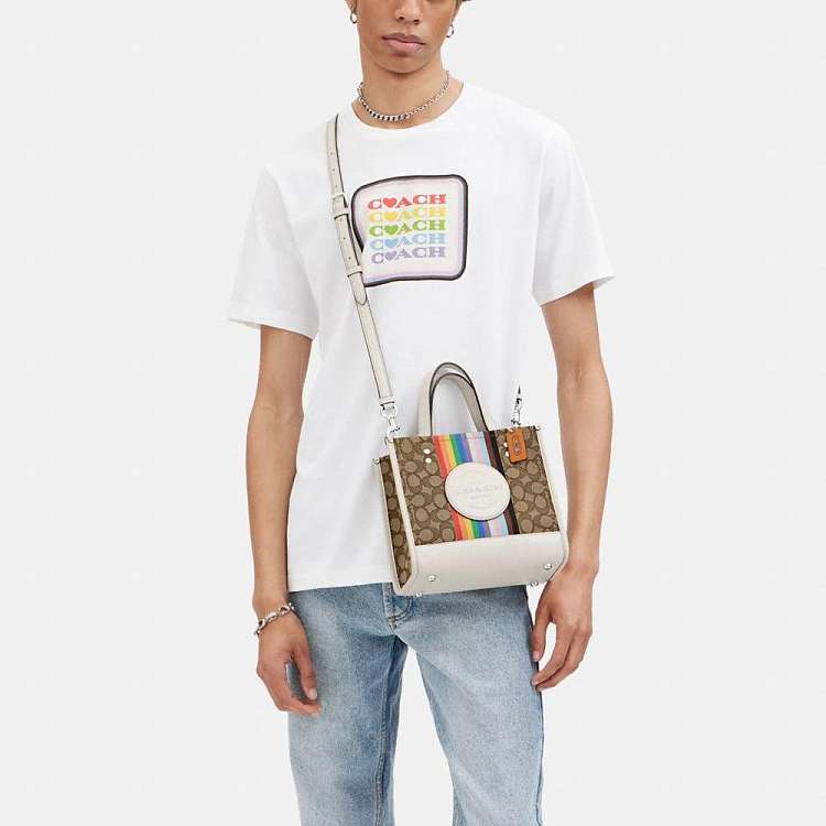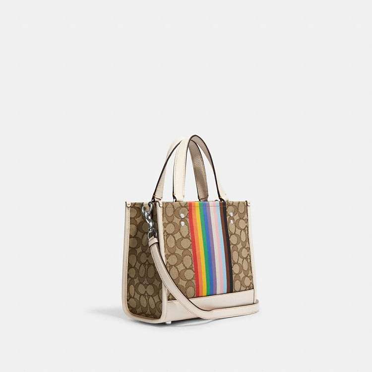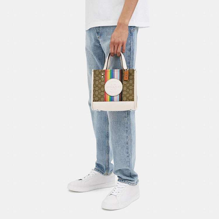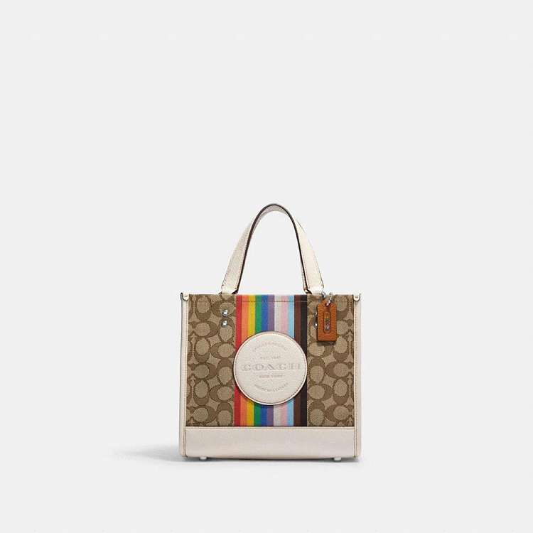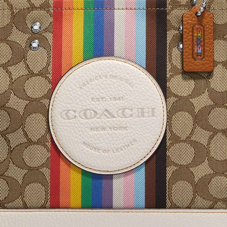 Coach 女款 Dempsey 托特包 22 In Signature Jacquard With Rainbow Stripe And Coach Patch CJ576