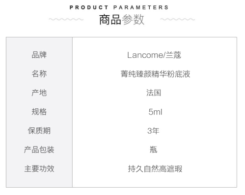 20版兰蔻菁纯粉底液小样5ml110#