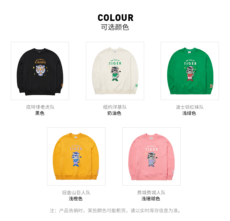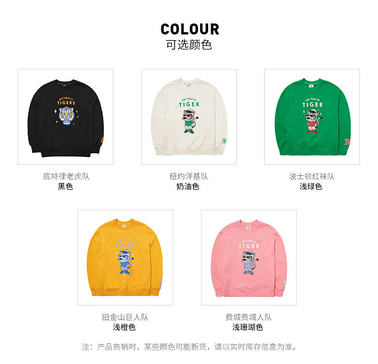 【男女通款】 韩国MLB 费城费城人队 虎年限定 圆领卫衣 男女同款 粉色