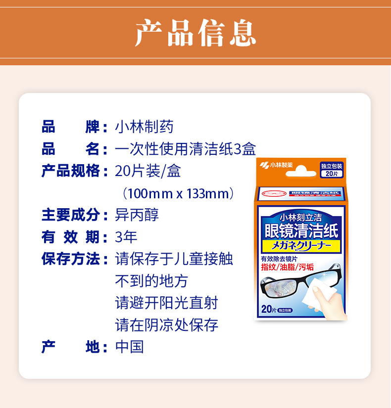 小林眼镜清洁纸 20包 防雾型