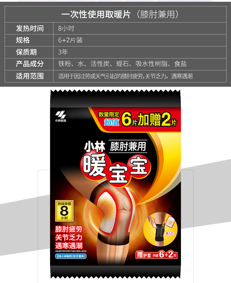 小林暖宝宝取暖片 膝肘兼用6+2片