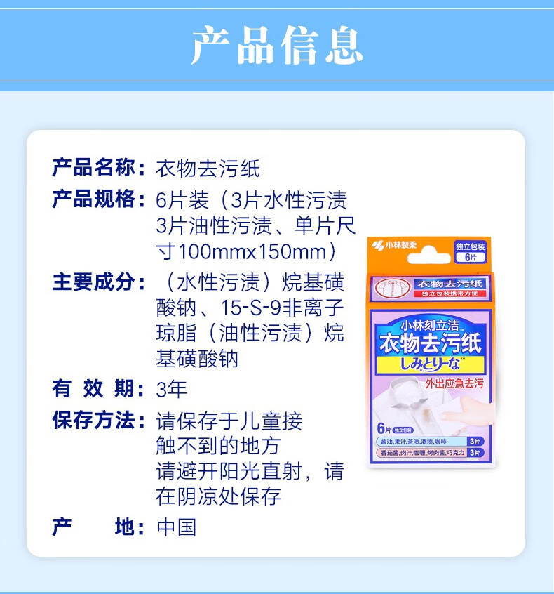 小林刻立洁牌 衣物去污纸6片