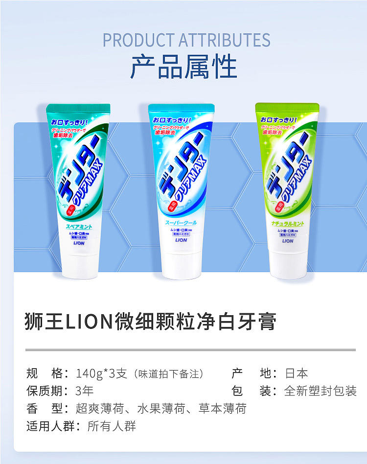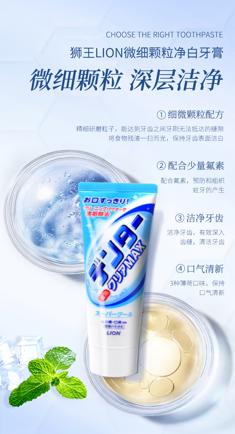 狮王MAX粒子洁净牙膏140克 超爽薄荷9