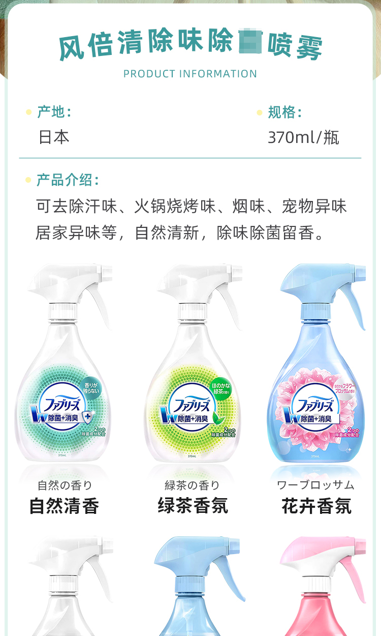 宝洁风倍清衣物去味喷雾 320ml 替换 宝宝无香