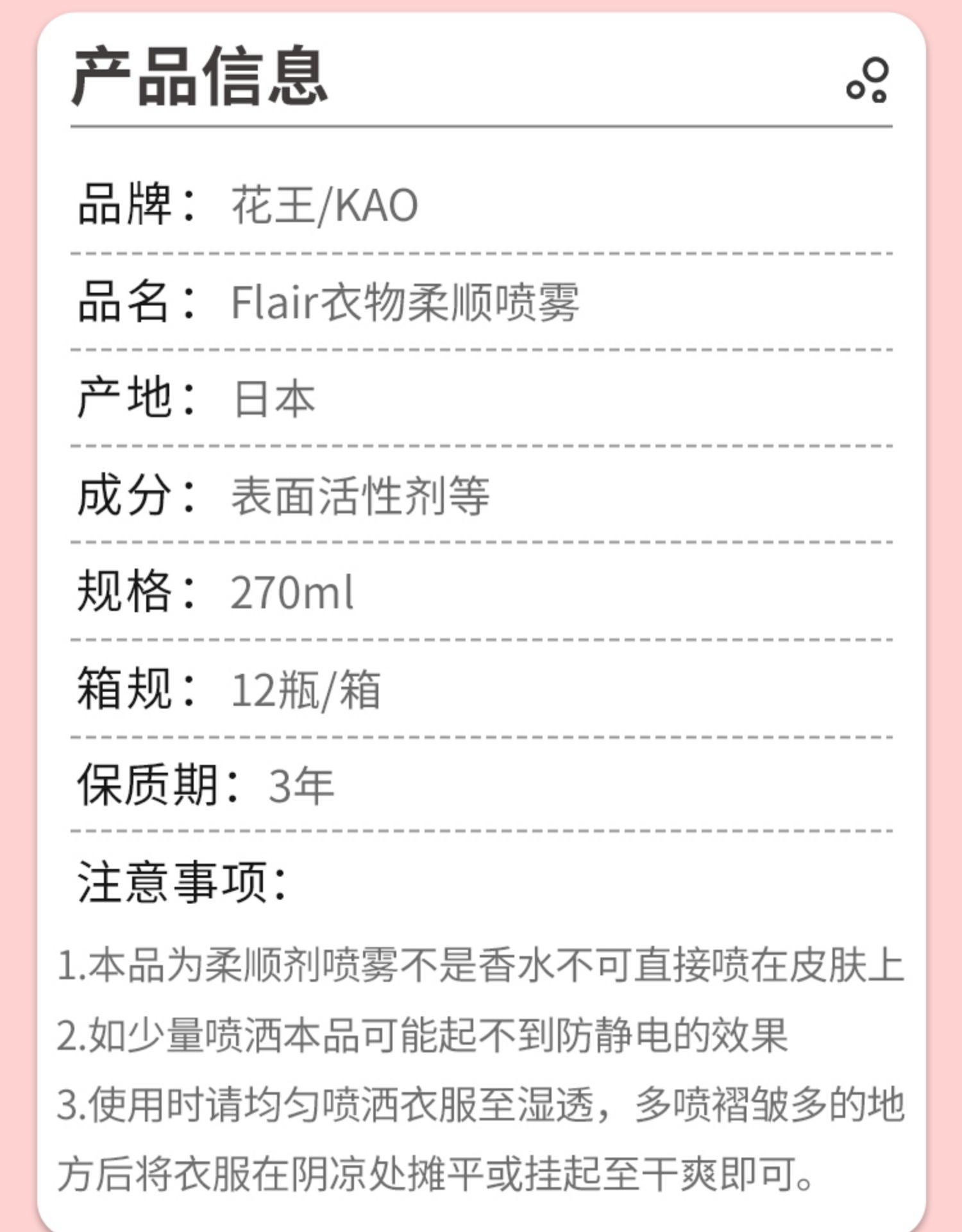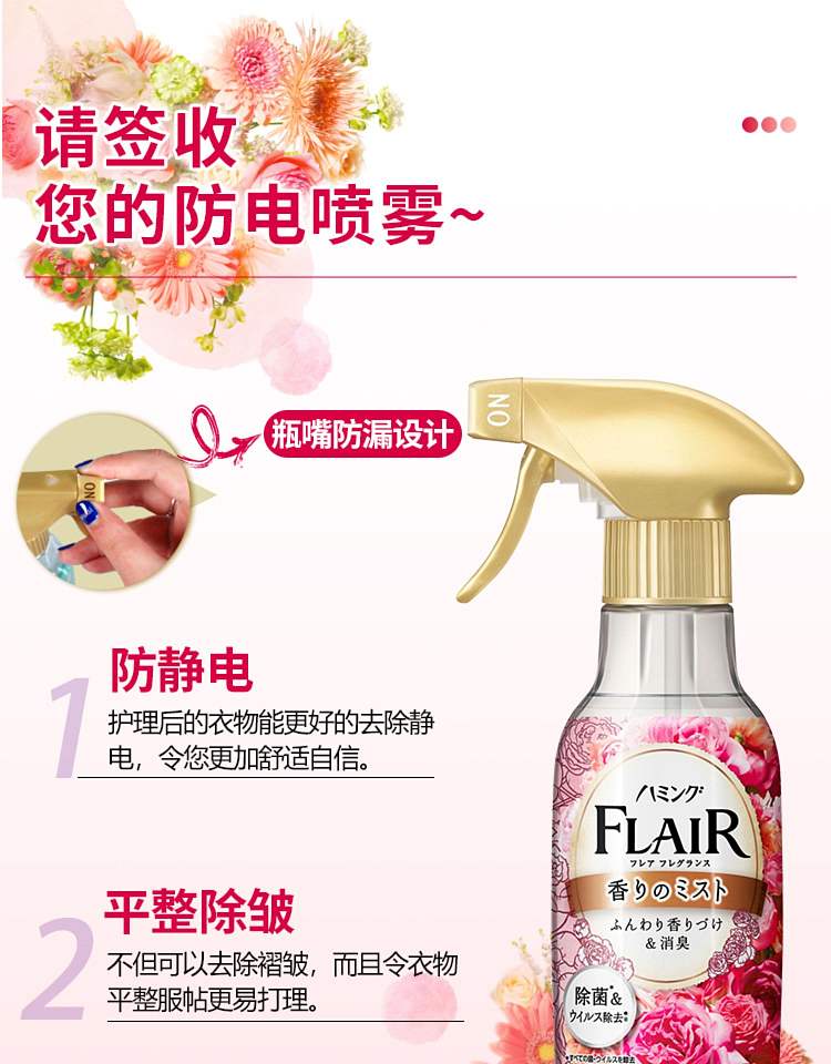 Kao花王防静电柔顺喷雾 金色白花香
