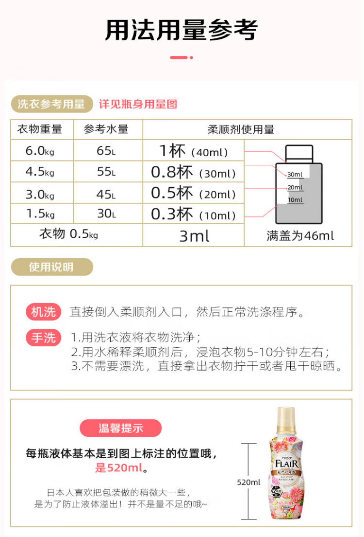 (TB)花王柔顺剂 520ml 橙色迷人花束香