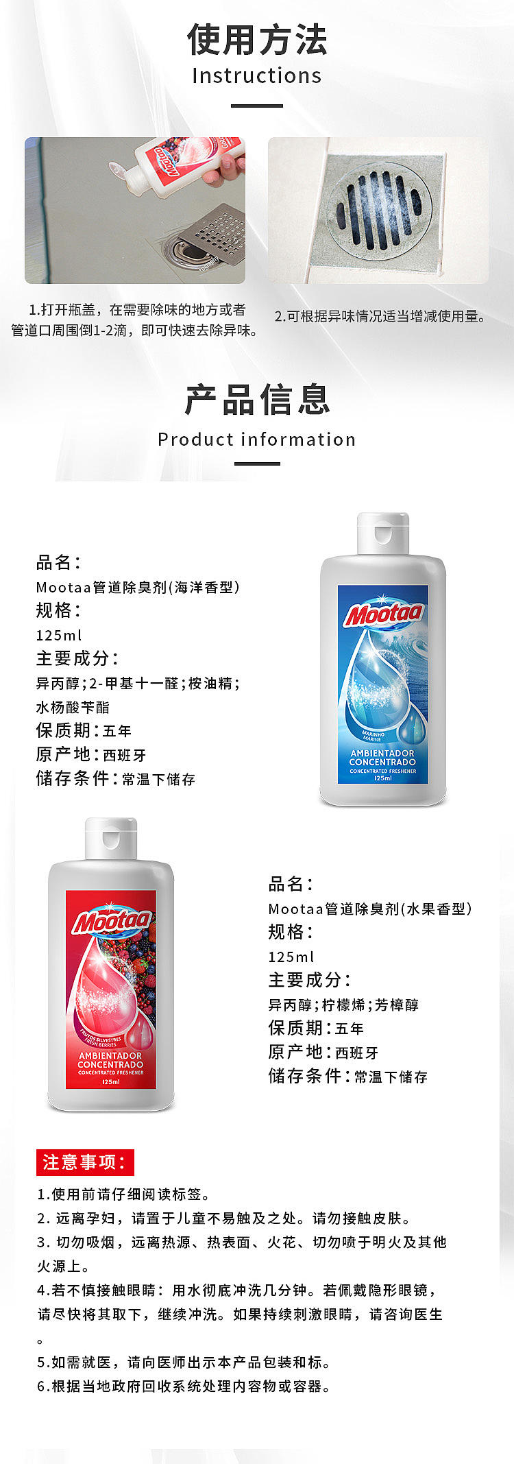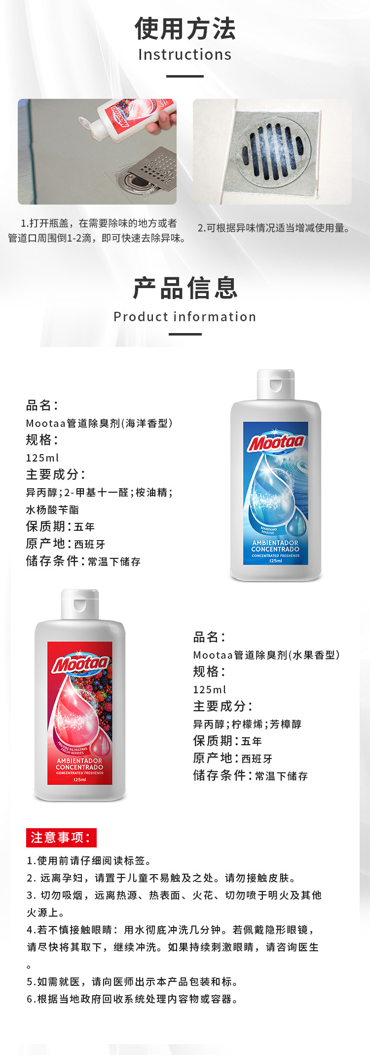 Mootaa膜太管道除臭剂 125ml 海洋香型