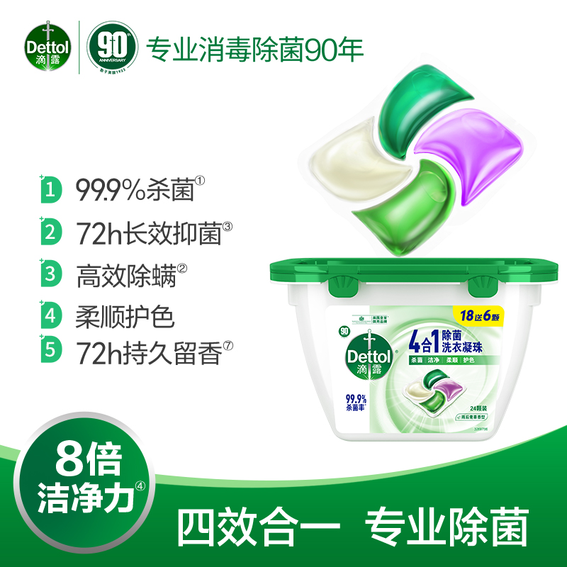 滴露除菌洗衣凝珠四合一18+6颗