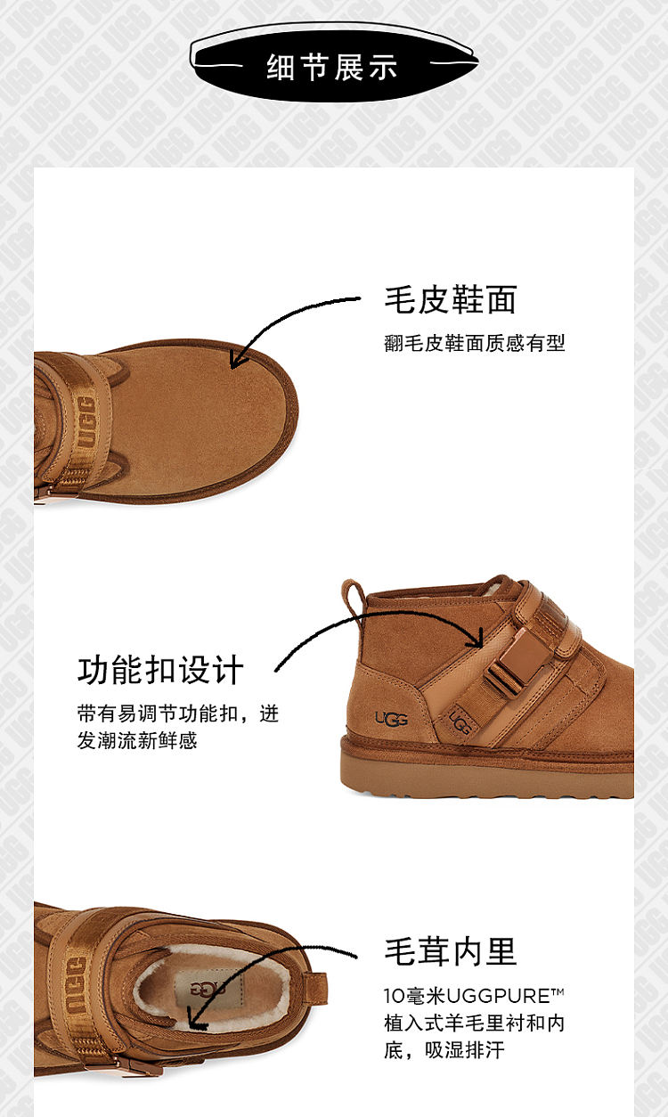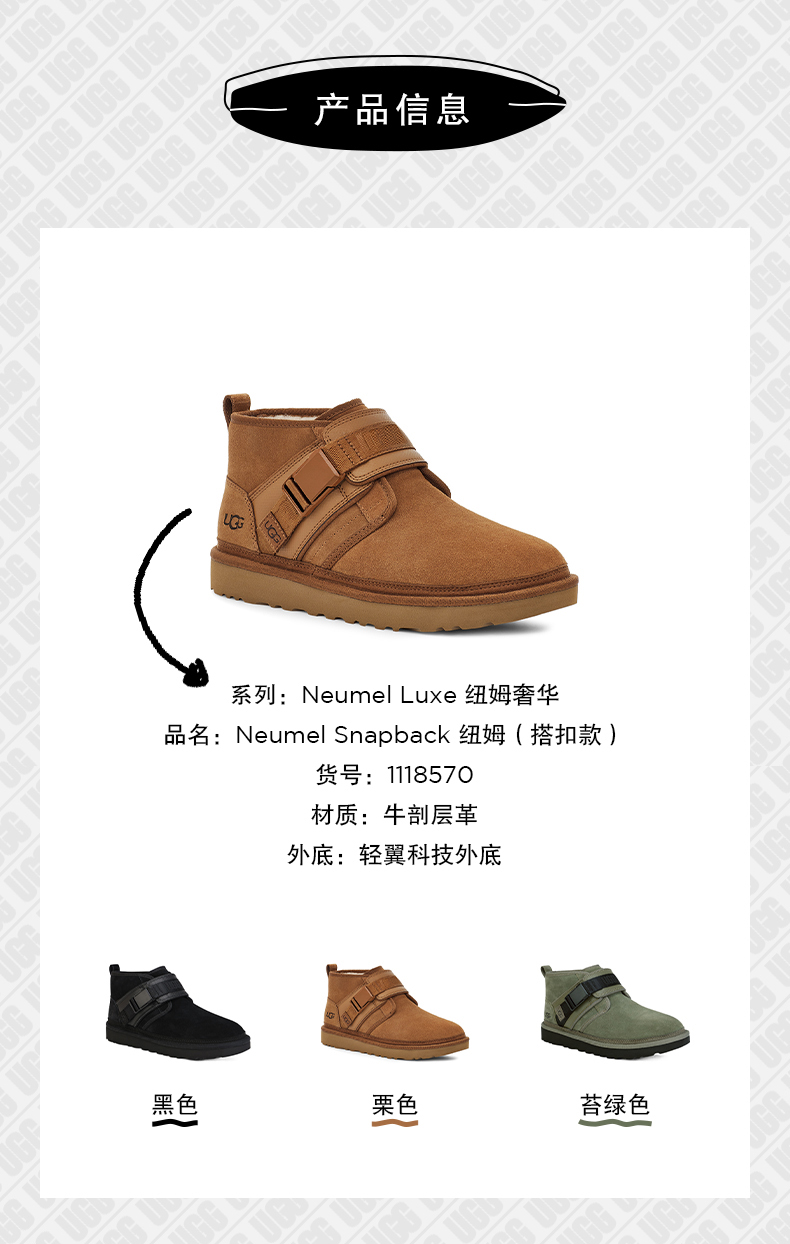 【男款】 UGG 2021男士秋冬新款时尚纽姆搭扣休闲雪地靴 栗棕色