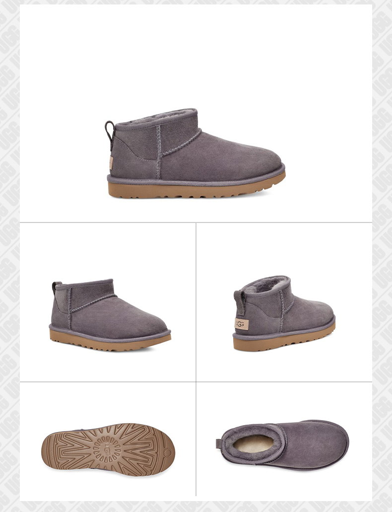 【女款】 UGG 2021秋季新款女士皮毛一体周冬雨同款经典迷你短靴 灰色