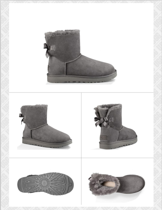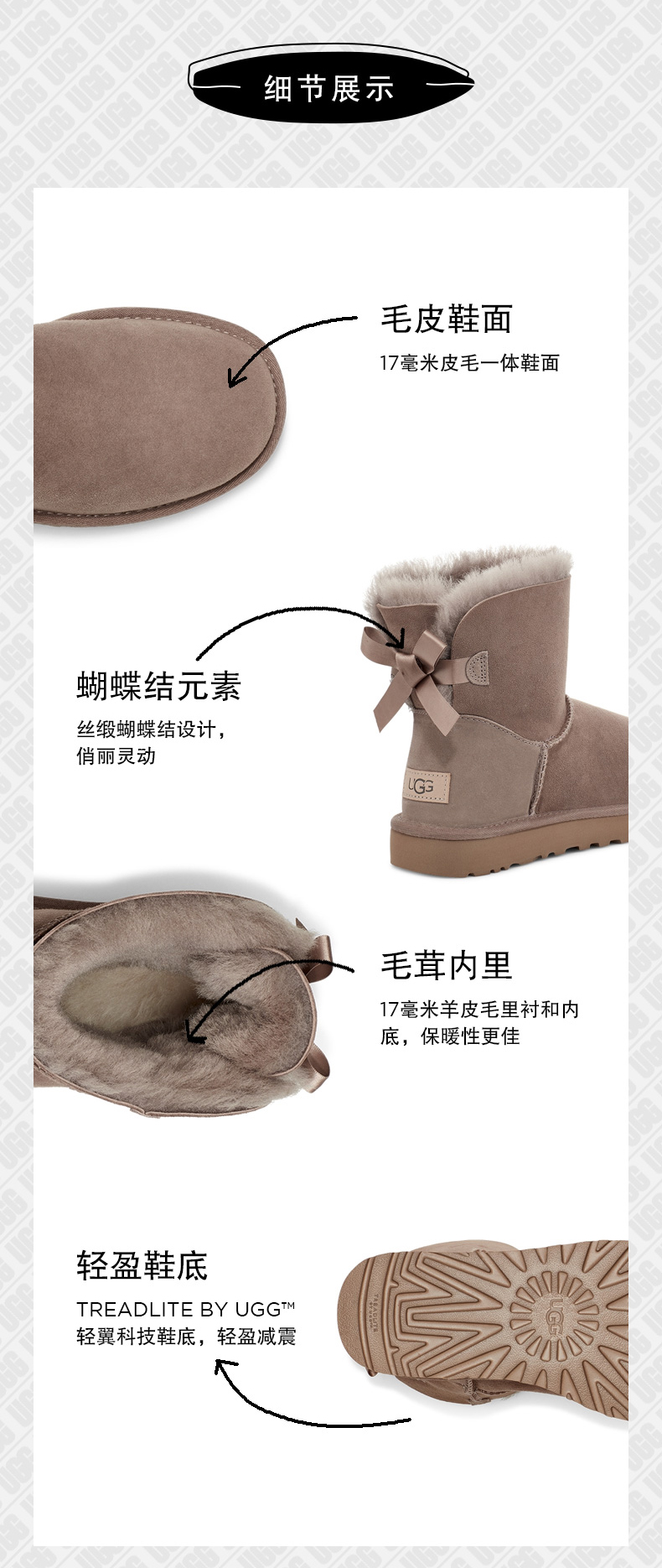 【女款】 UGG 2021秋冬新款女士羊皮毛一体雪地靴经典贝莉蝴蝶结短靴 灰色