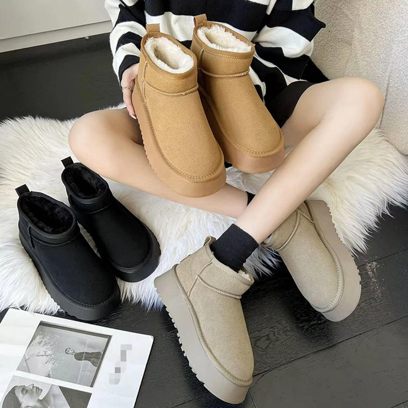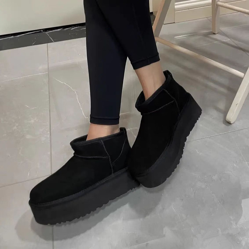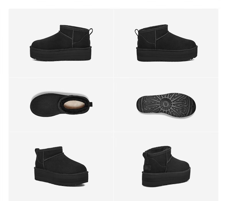 【女款】 UGG 2022冬季女款厚底皮毛一体经典迷你短靴 黑色