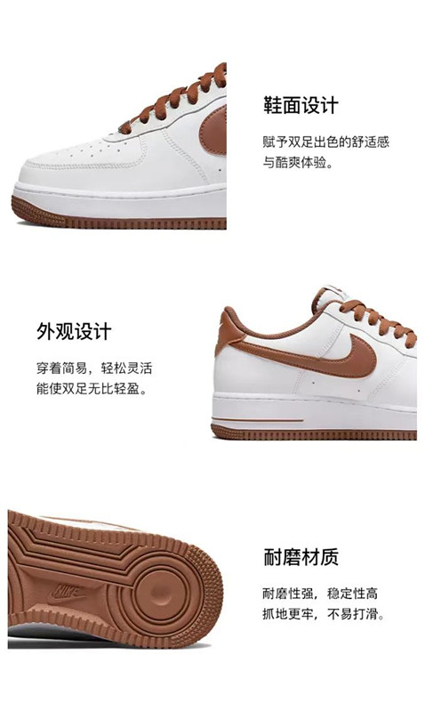 【男女同款】 经典爆款耐克NIKE AIR FORCE 1 空军一号 白棕 男女同款