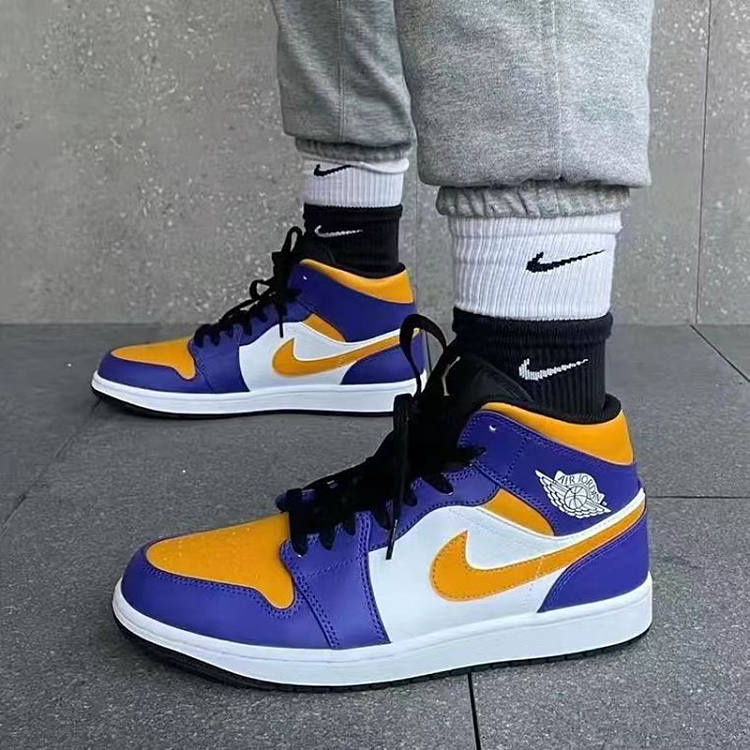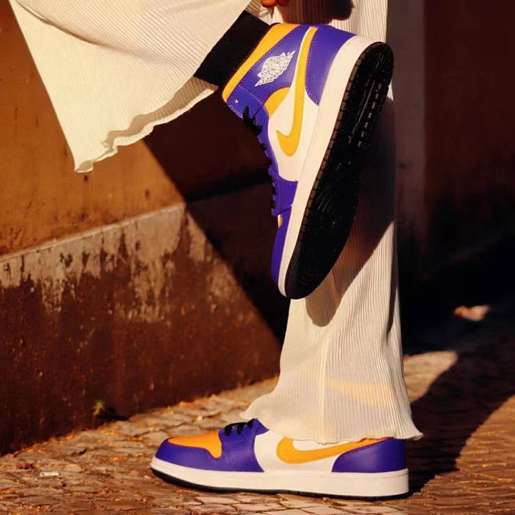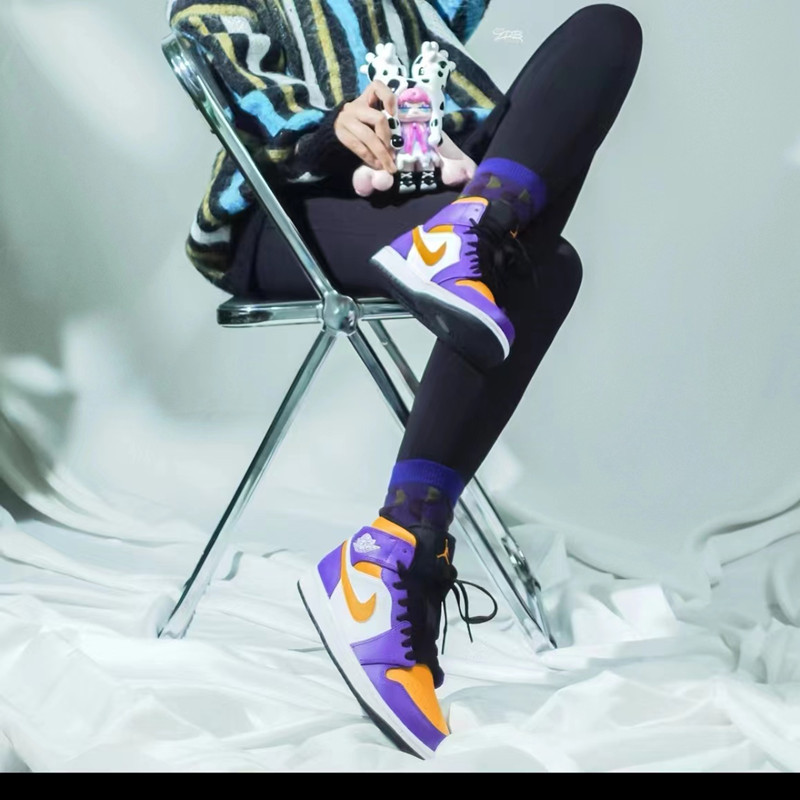 【女】 耐克AJ1 紫金湖人中帮复古休闲鞋 男女同款