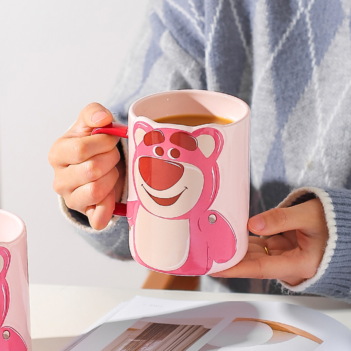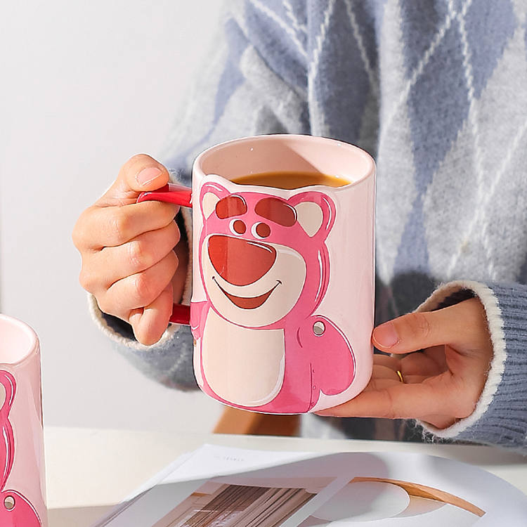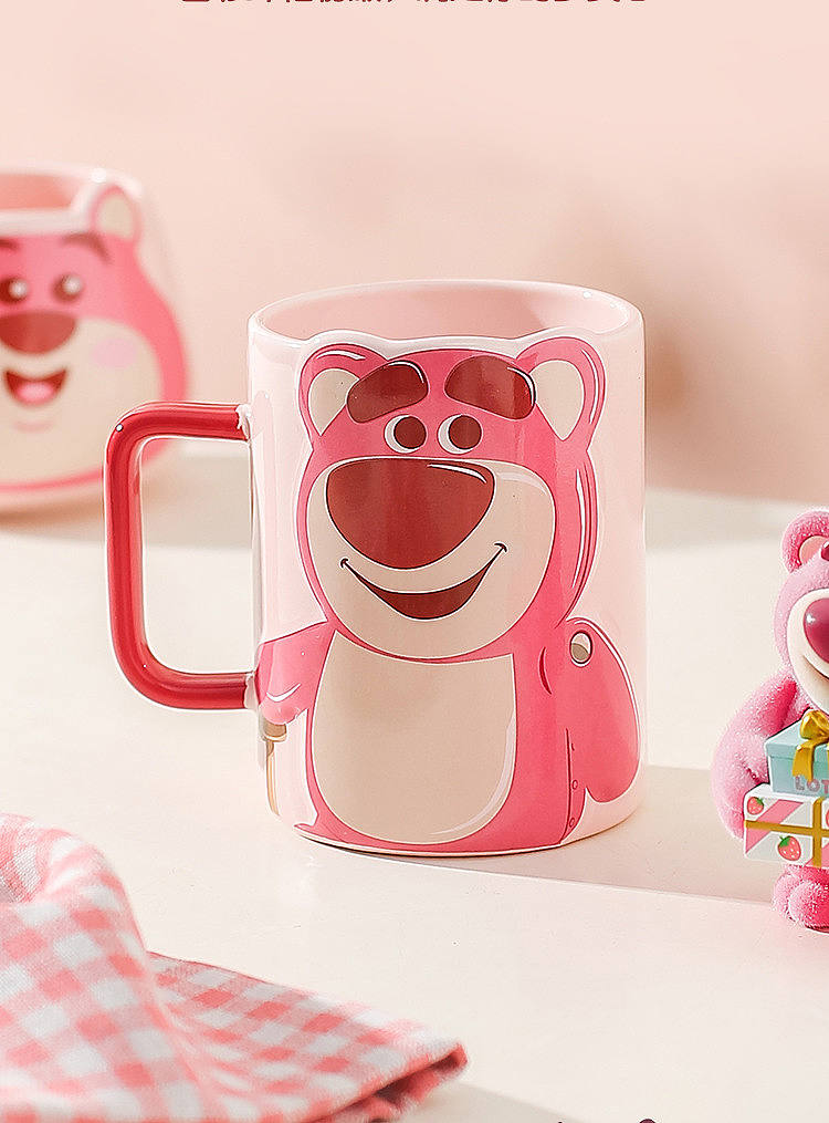 迪士尼草莓熊杯子陶瓷马克杯女生高颜值水杯家用早餐咖啡杯