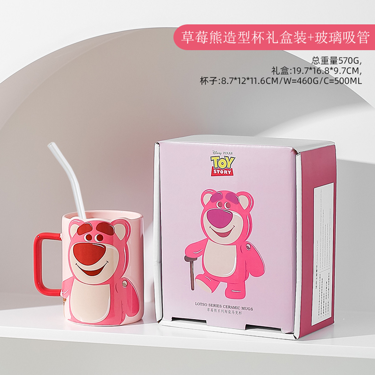 • 草莓熊造型杯礼盒装+玻璃吸管