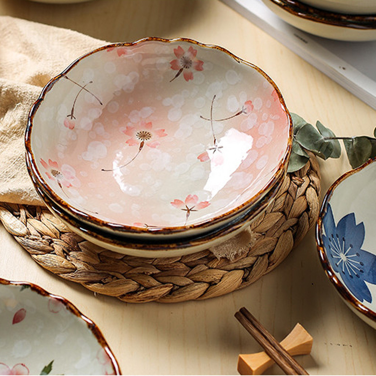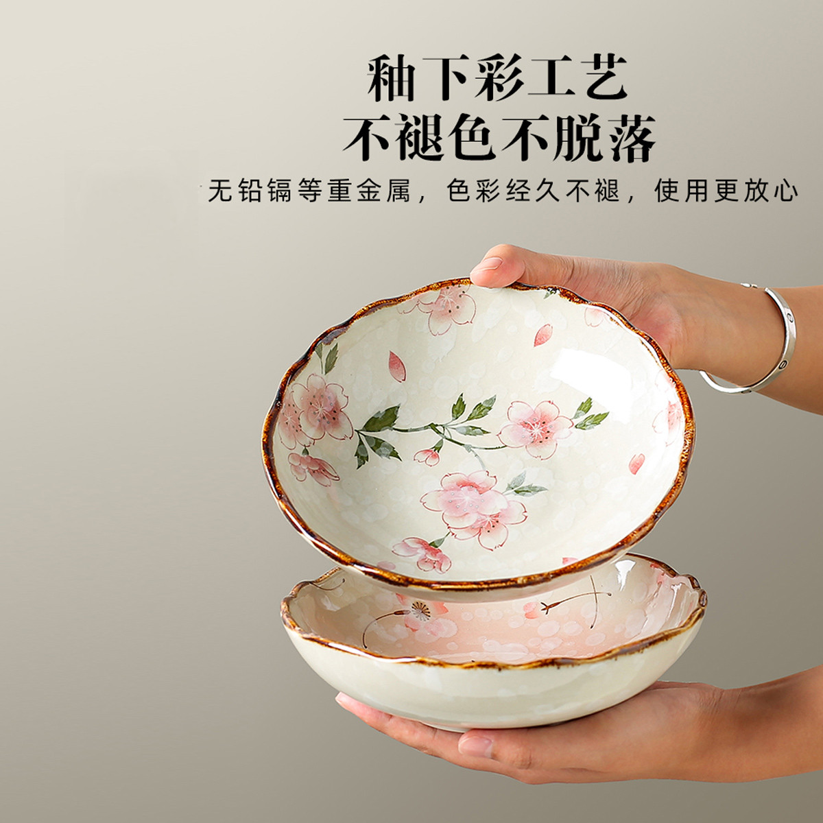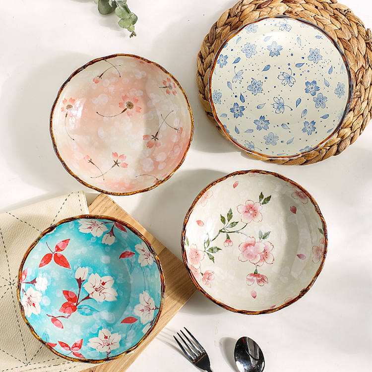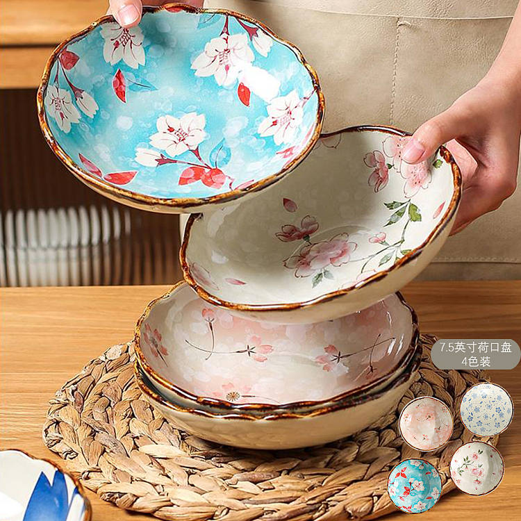 【釉下彩】日式陶瓷盘子4件菜盘家用网红创意餐盘高级感碟子深盘7.5英寸