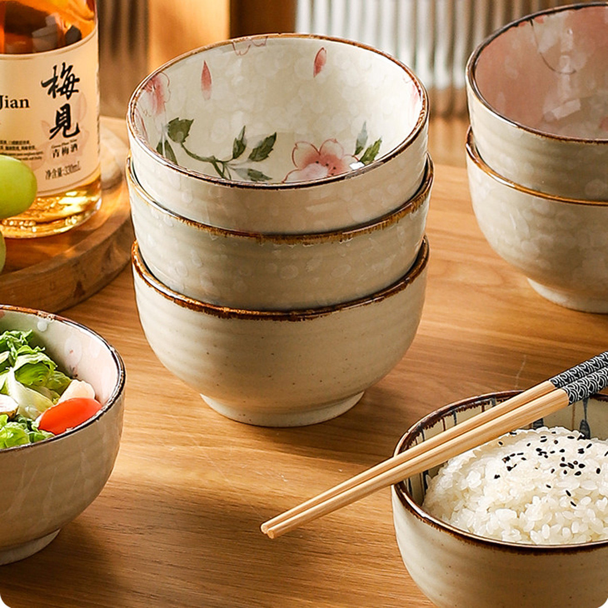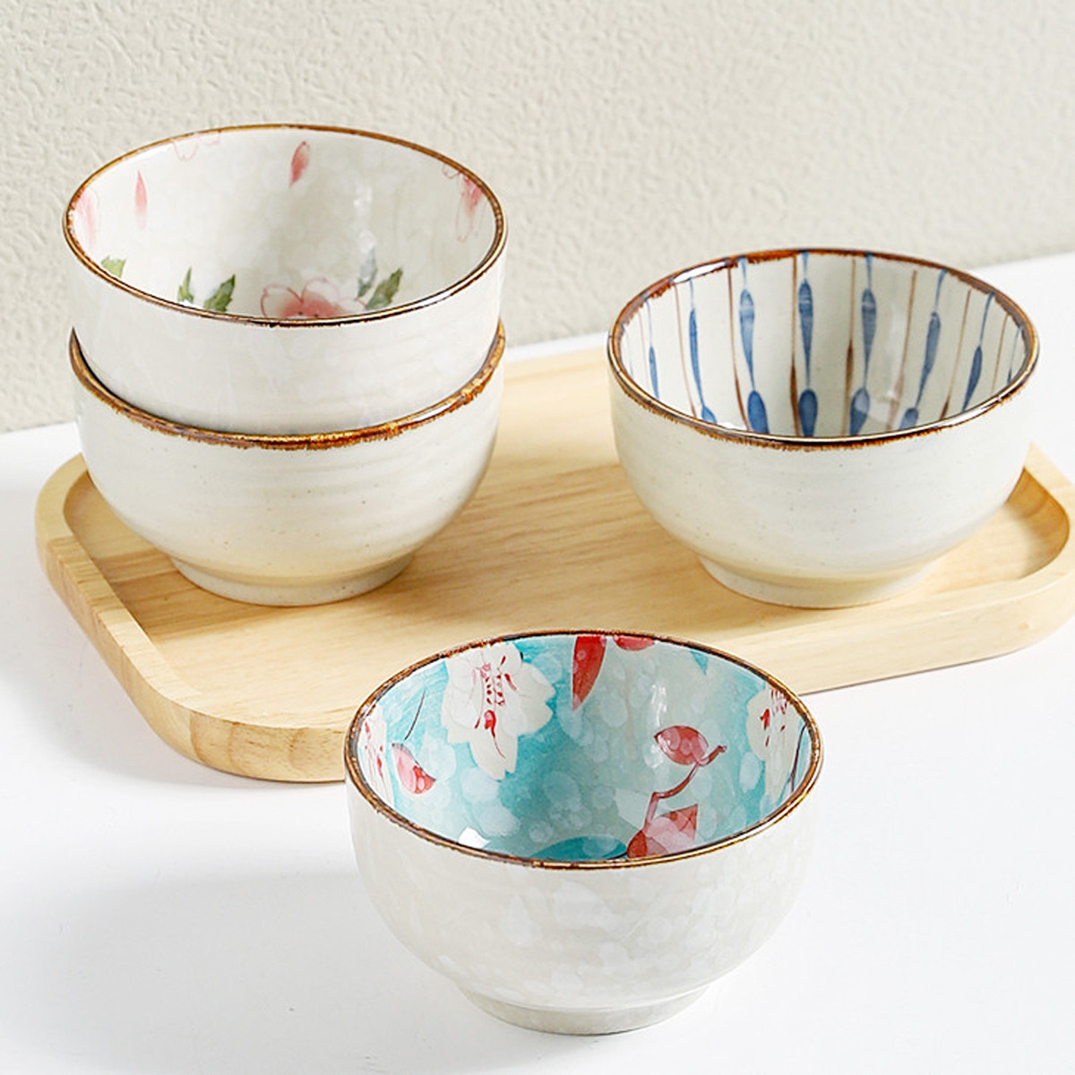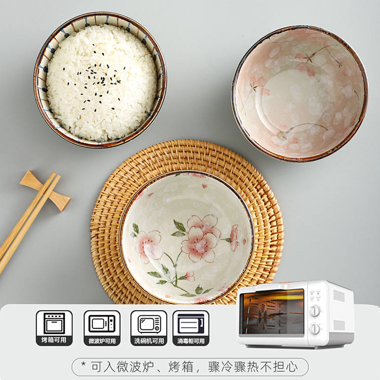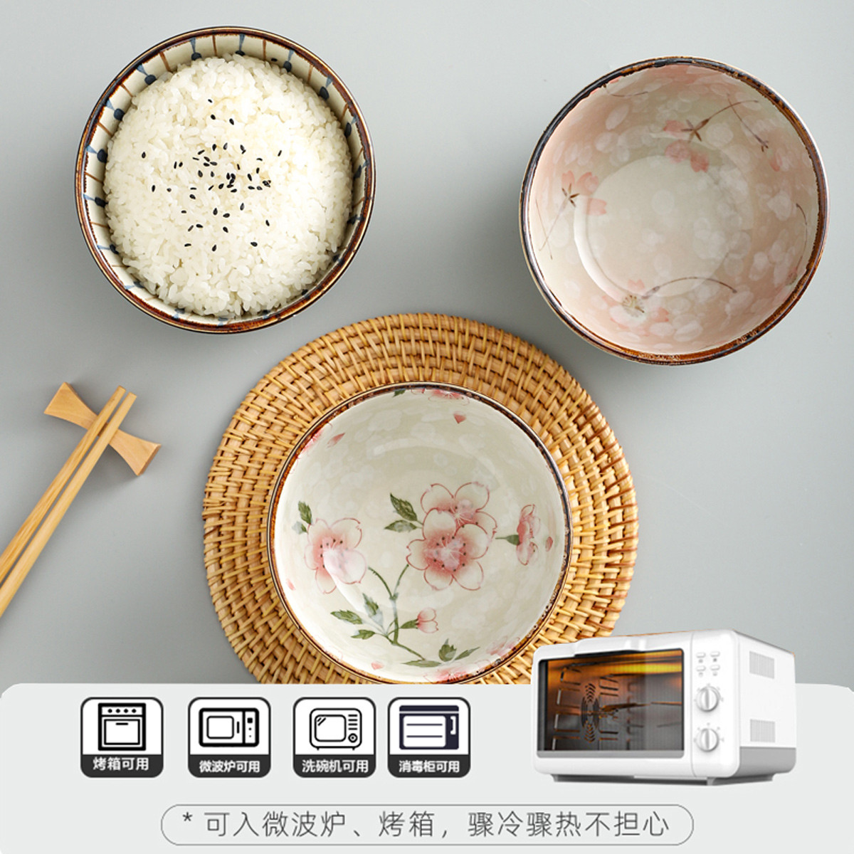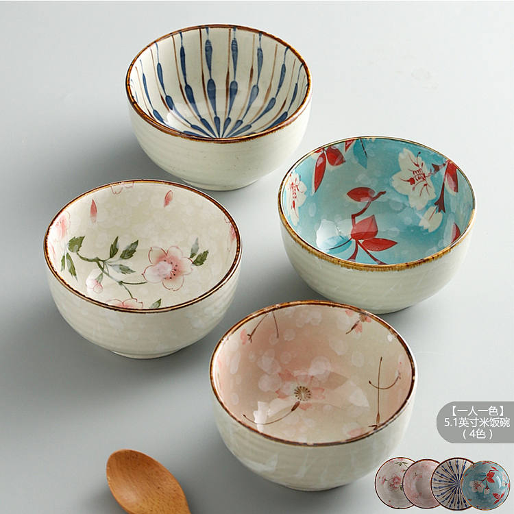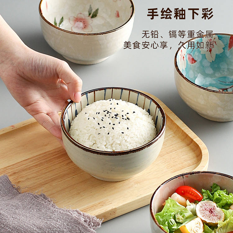 【釉下彩】日式餐具陶瓷碗家用5寸米饭碗4混色饭碗套装5.1英寸