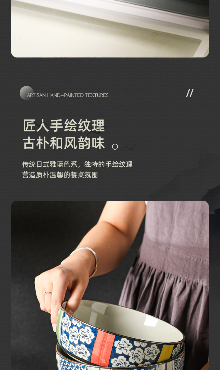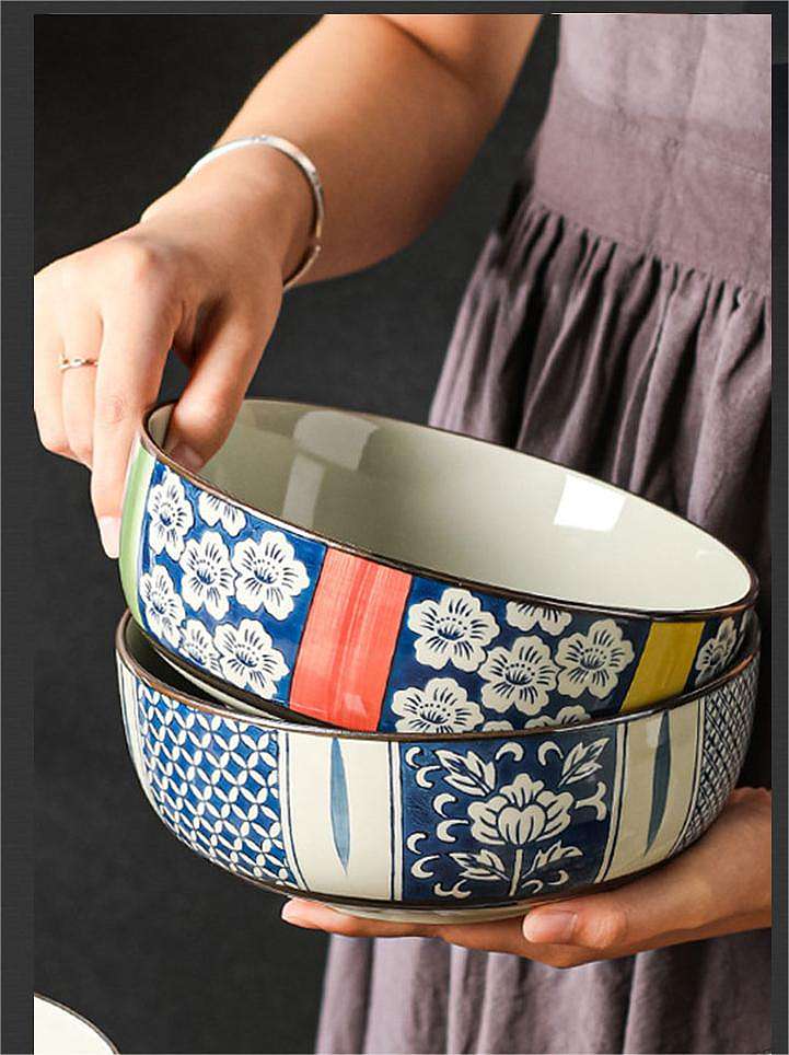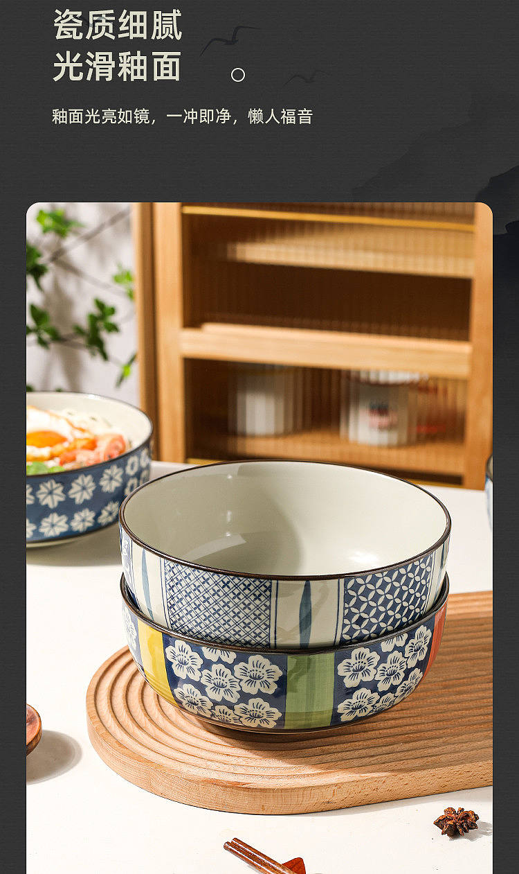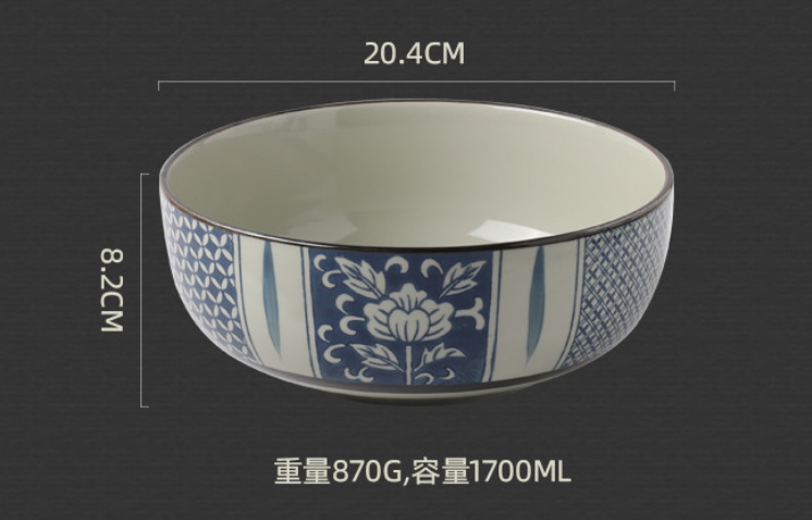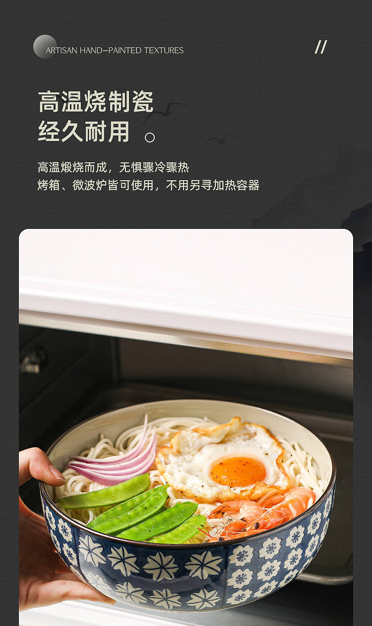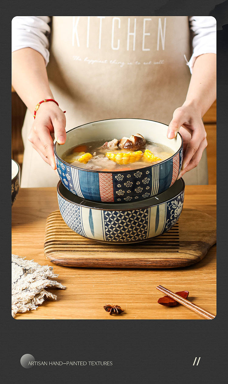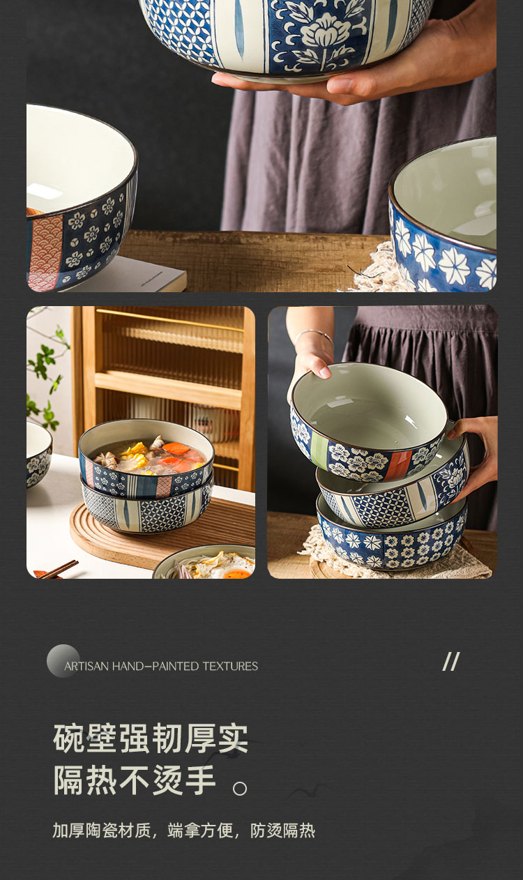 手绘釉下彩日式汤碗大号家用盛汤大碗拉面碗